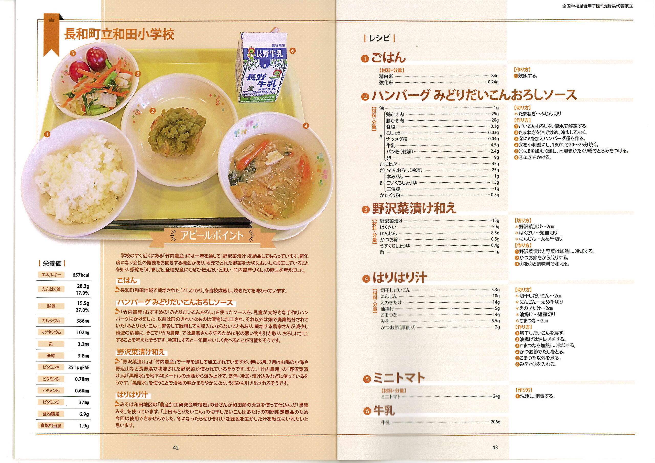 まさに「和田の宝」が詰まったメニューです。 このような美味しい給食を毎日いただけることに感謝し、食事を通して自分たちの生まれ育った地域を大切にする心を育んでいきたいと考えています。