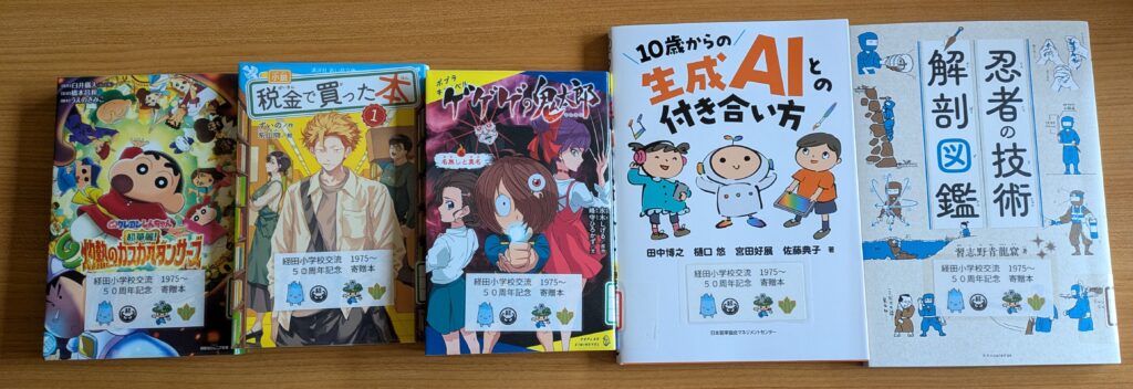 経田小学校との交流をきっかけに、経田地域の高瀬様からご寄付いただいた図書費を使って、新しい本を購入する運びとなりました。