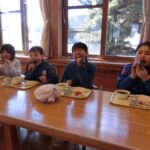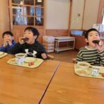 給食の時間には、調理員の皆さんが心を込めて手作りしてくださった特大の恵方巻が登場しました。 「今年の恵方はどっちかな?」と方角を確認しながら、大きな口を開けて頬張る子どもたち。学校中がおいしい笑顔に包まれました。