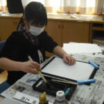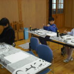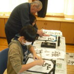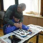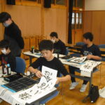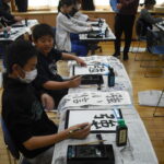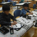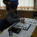 子どもたちは、そのご指導から、真剣に書に取り組む姿勢を学び、張り詰めた空気の中、集中して一文字一文字を書き上げました。
