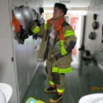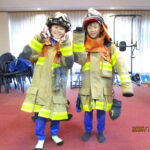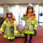 👨🚒 実際の消防服を着用体験 本物の消防服を着させていただき、その重さや装備を実感しました。